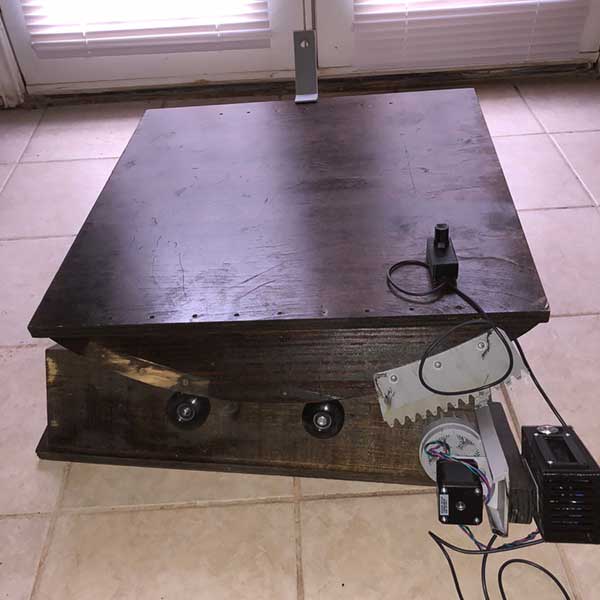 I have a 12" Dobsonian telescope to observe the night sky. Learning to find DSOs can be difficult when done by oneself. I notice a major increase in objects I'm able to find when participating in BVAC group observations at a star party or after club meetings. After practicing many hours of finding DSOs, I gained experience in noticing how objects move out of the eyepiece field of view (FOV) because of earth's rotation. Before choosing the Dobsonian telescope, I really favored the go-to concept. But after experiencing different types of telescopes at a BVAC star party, my mind was completely changed to choose a Dobsonian, although I didn't like how it had no tracking features. So I set out to change this by thinking to mount motors and use a micro controller to track night sky objects. At first I wanted to mount two motors to track azimuth and altitude angles. But BVAC President, Tim Cowden, explained that even if I got the two-motor concept to work, I would need a third motor rotating the eyepiece to compensate for image rotation. Tim suggested I look into a equatorial platform to track and said that other amateur astronomers have built their own. So I went off and googled “equatorial platform” and was convinced to take this approach. It seemed more elegant to me, as a first step, to build a platform to track night sky objects.