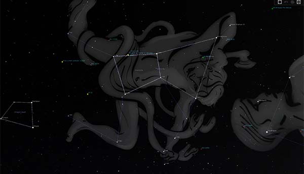 His other labors involved killing Hydra the 9-headed snake, a giant crab (Cancer), capturing a large deer (the antlers are formed with the stars from Cassiopeia), killing a Cretan bull (Taurus), and several other creatures.