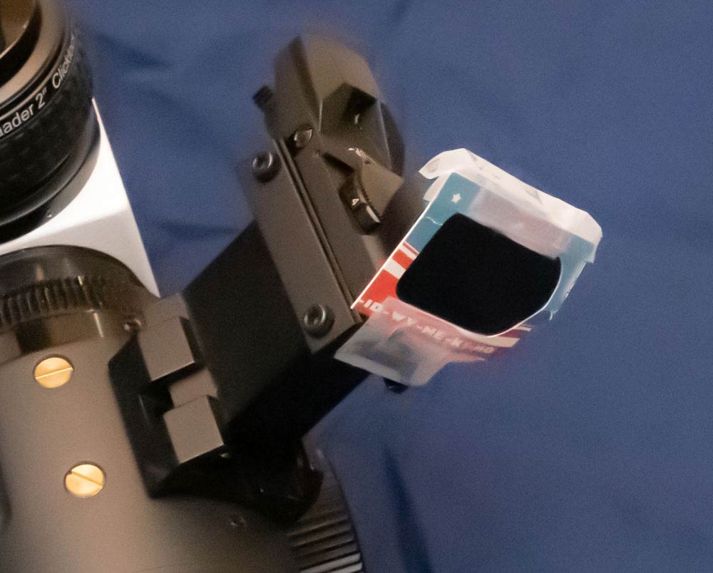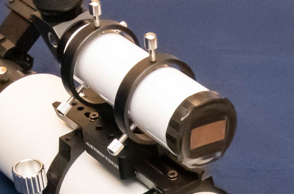 Astro-Tech AT115EDT 115mm f/7 (805mm focal length) refractor with a Thousand Oaks Optical front mounted solar blocking filter.