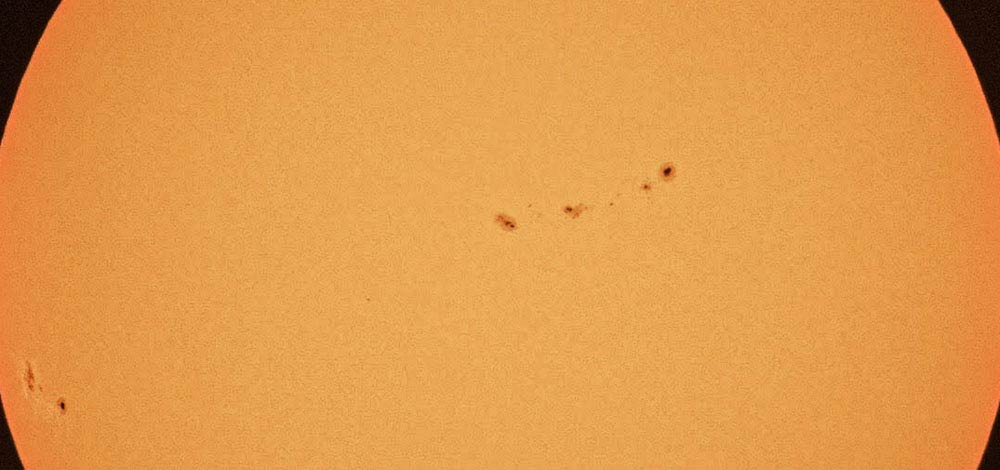 The image shown in Fig. 4 was made using the setting listed above. It shows a single large sunspot. The image shown in Fig. 5 was made with only slightly different settings. It shows multiple sunspots across the surface of the sun.